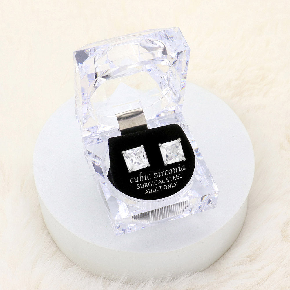iLLASPARKZ 9mm Square Crystal Cubic Zirconia CZ Stud Earrings with Clear Box