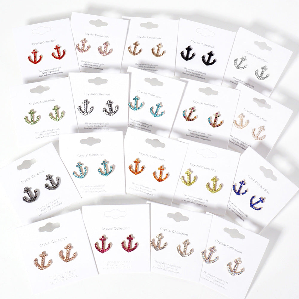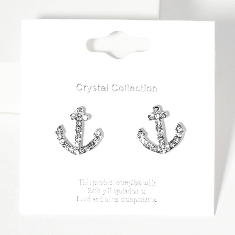 iLLASPARKZ Crystal Rhinestone Paved Anchor Stud Earrings
