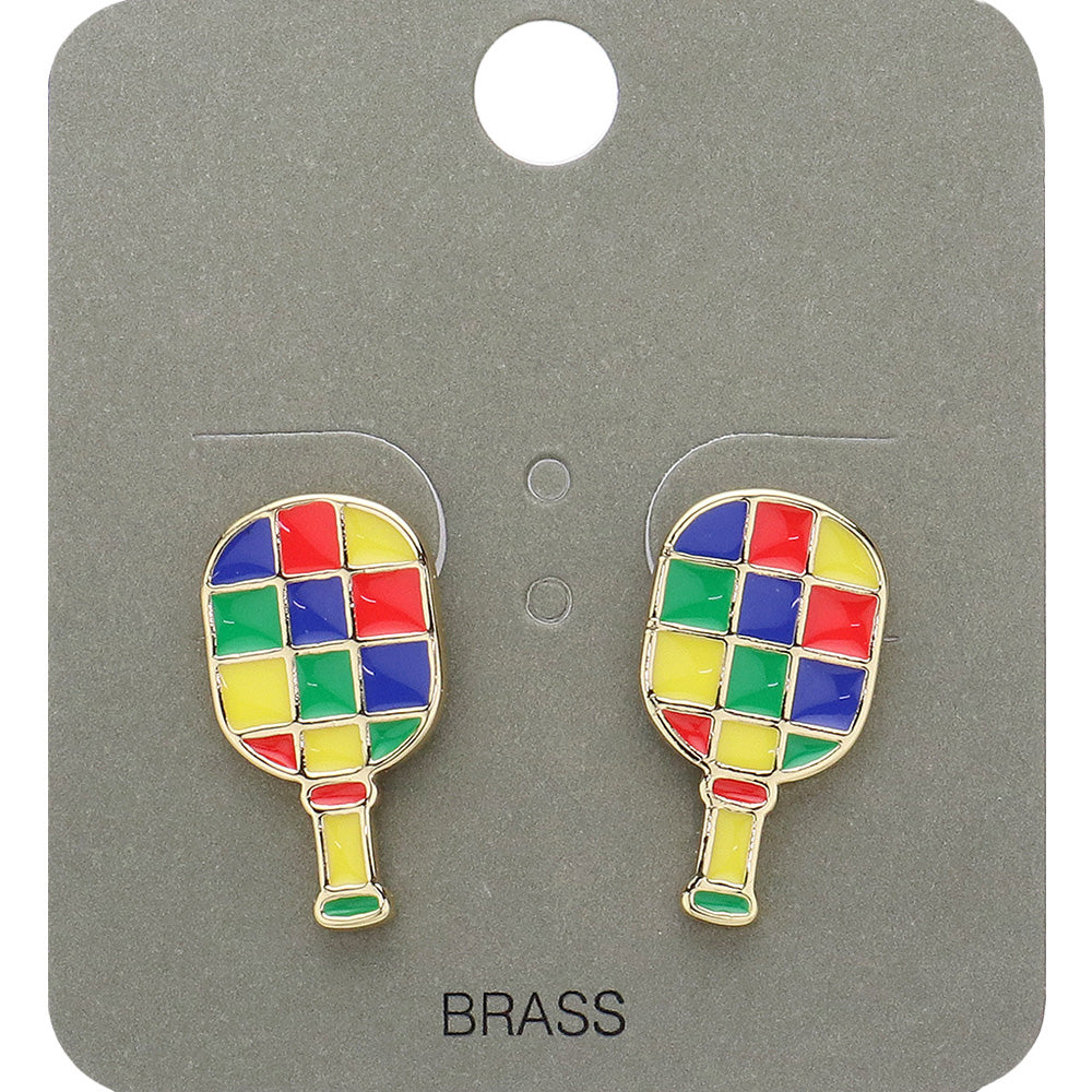 iLLASPARKZ Enamel Checkered Pickleball Paddle Stud Earrings