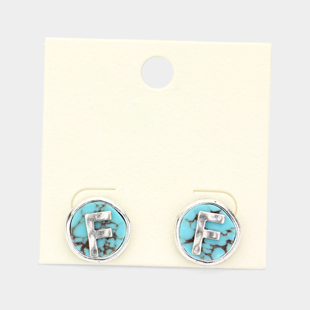 iLLASPARKZ -F- Monogram Turquoise Stud Earrings