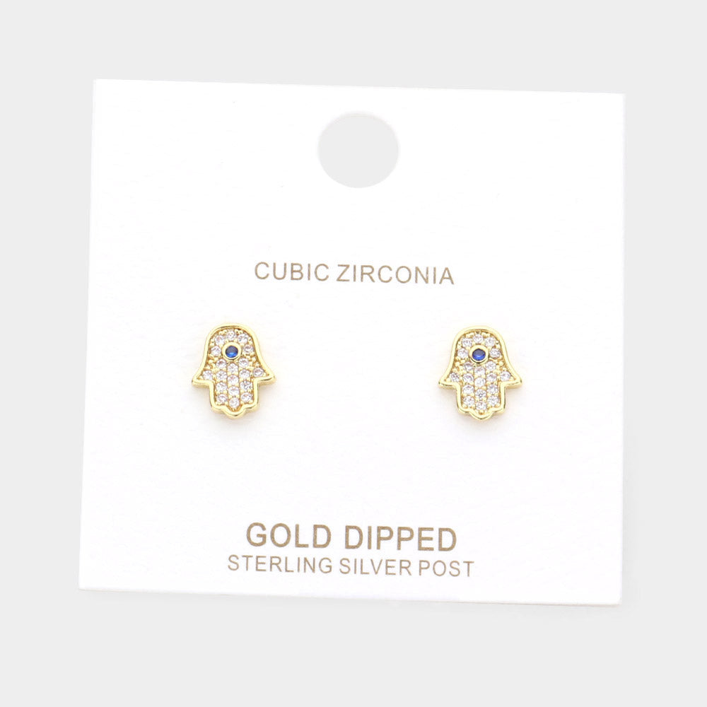 iLLASPARKZ Gold Dipped CZ Embellished Hamsa Hand Stud Earrings
