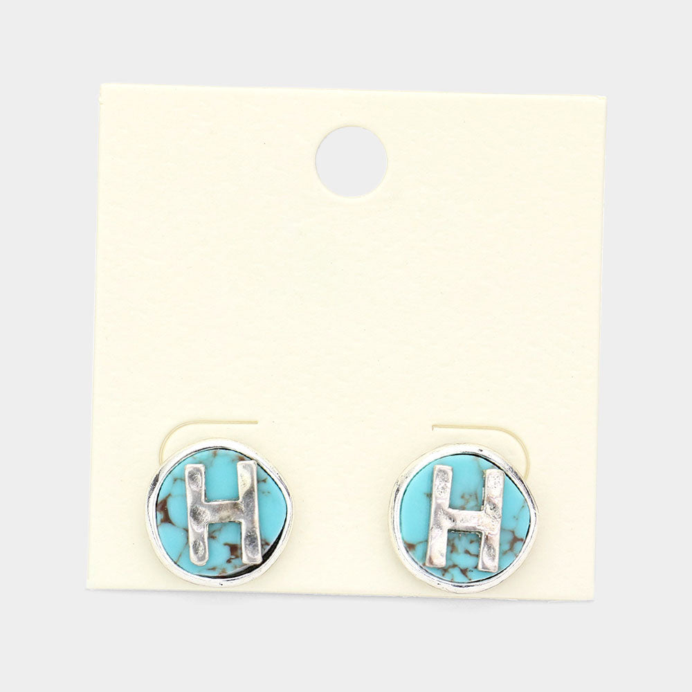 iLLASPARKZ -H- Monogram Turquoise Stud Earrings