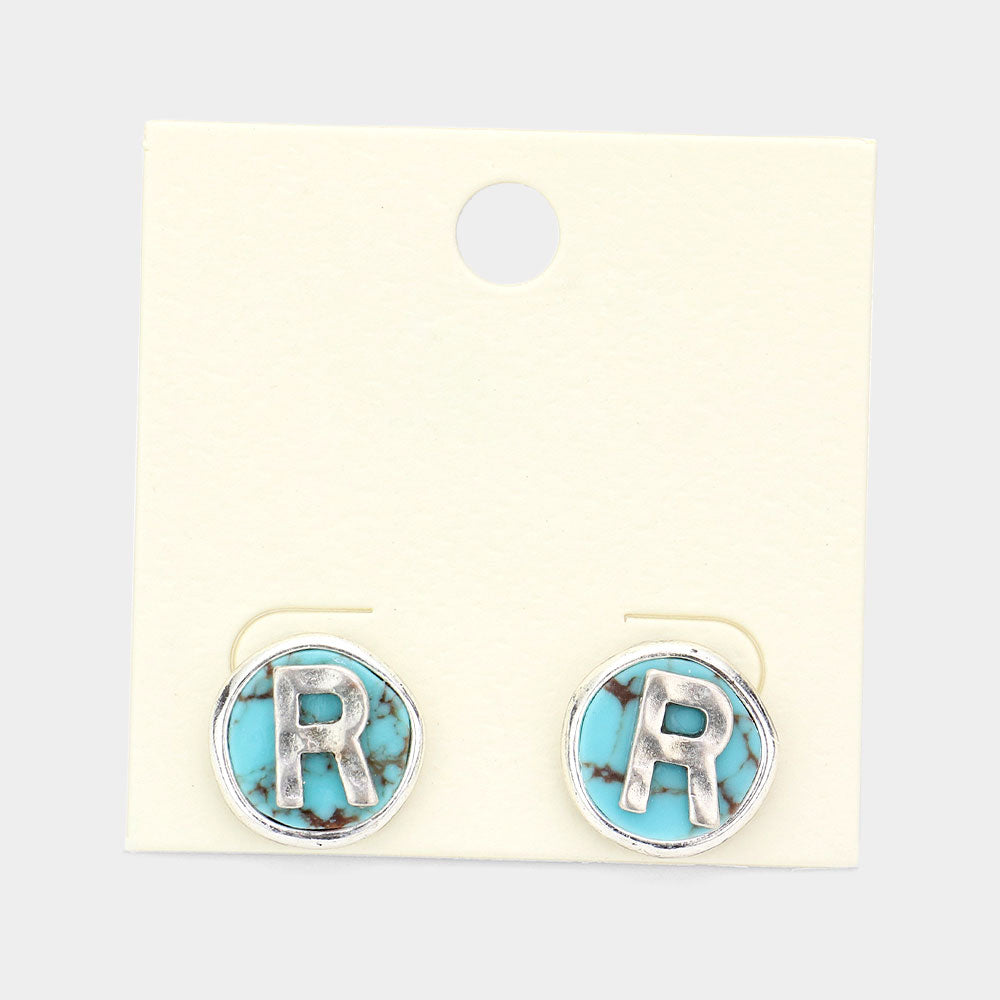 iLLASPARKZ -R- Monogram Turquoise Stud Earrings