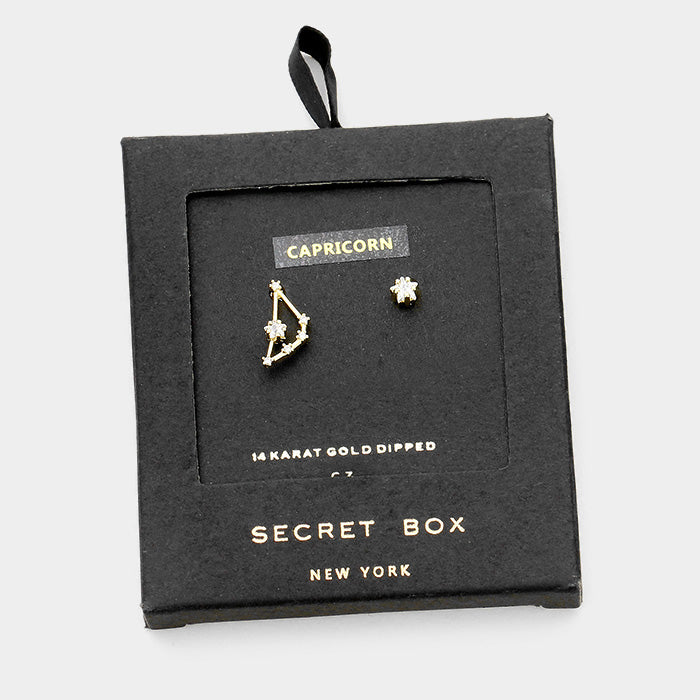 iLLASPARKZ Secret Box _ CZ Zodiac Sign Capricorn Stud Earrings