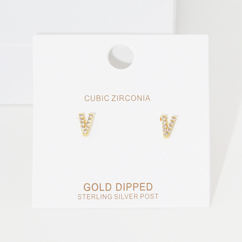 iLLASPARKZ -V- Gold Dipped Cubic Zirconia Monogram Stud Earrings
