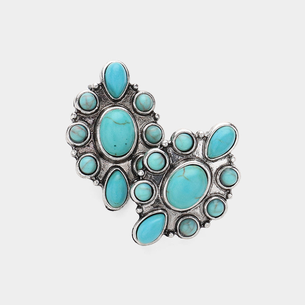 iLLASPARKZ Western Oval Turquios Stone Cluster Pointed Stud Earrings