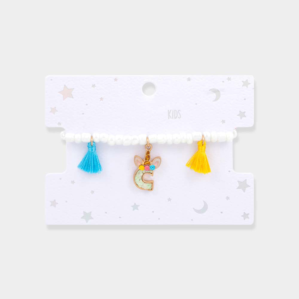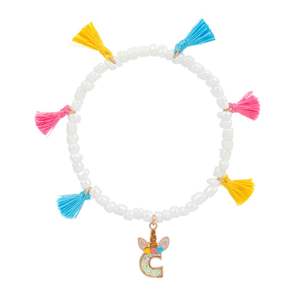 iLLASPARKZ -C- Unicorn Monogram Tassel Station Kid's Beaded Stretch Bracelet