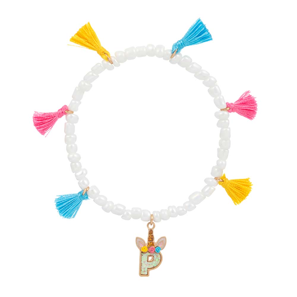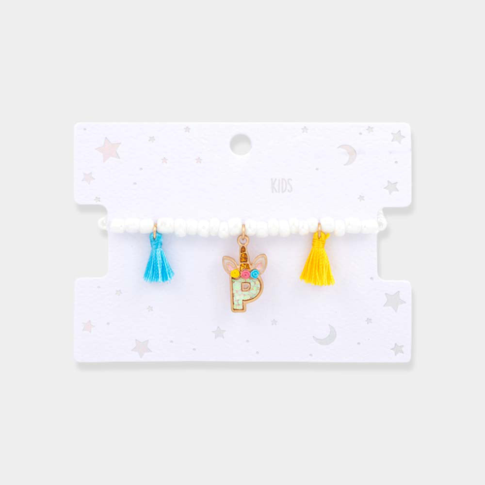 iLLASPARKZ -P- Unicorn Monogram Tassel Station Kid's Beaded Stretch Bracelet