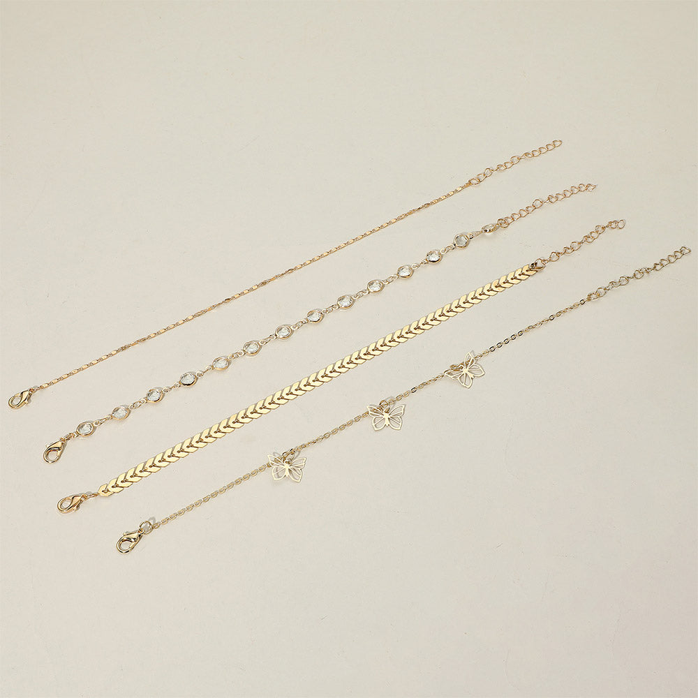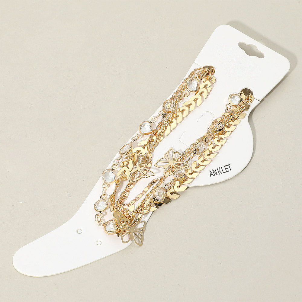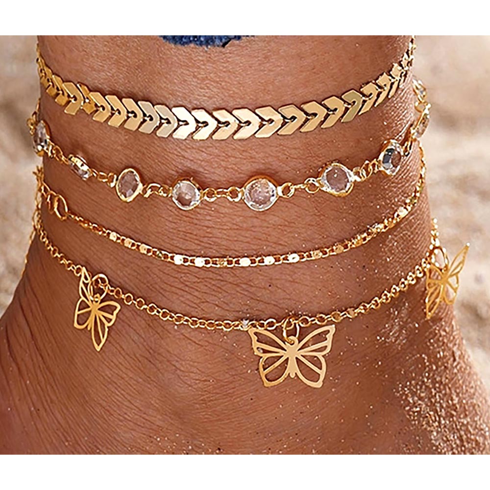 iLLASPARKZ 4PCS - Butterfly Charm Crystal Bezel Link Accent Boho Layered Chain Anklet Set