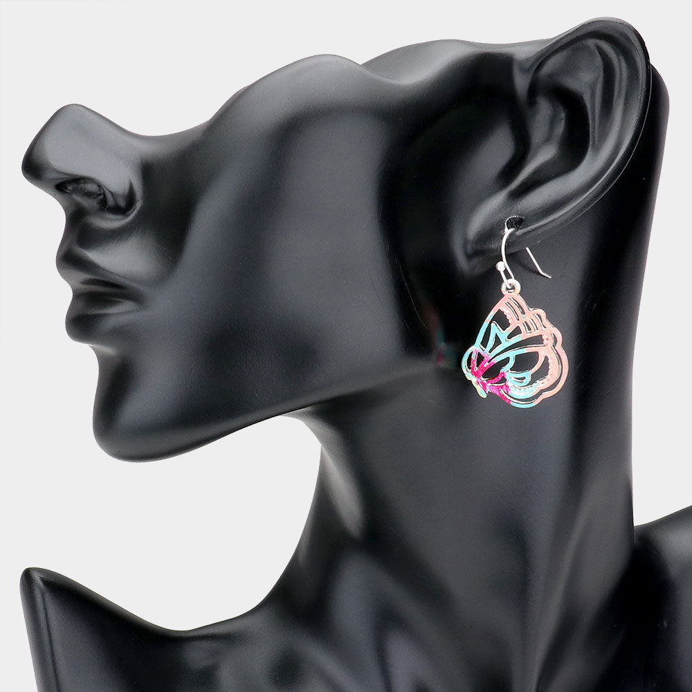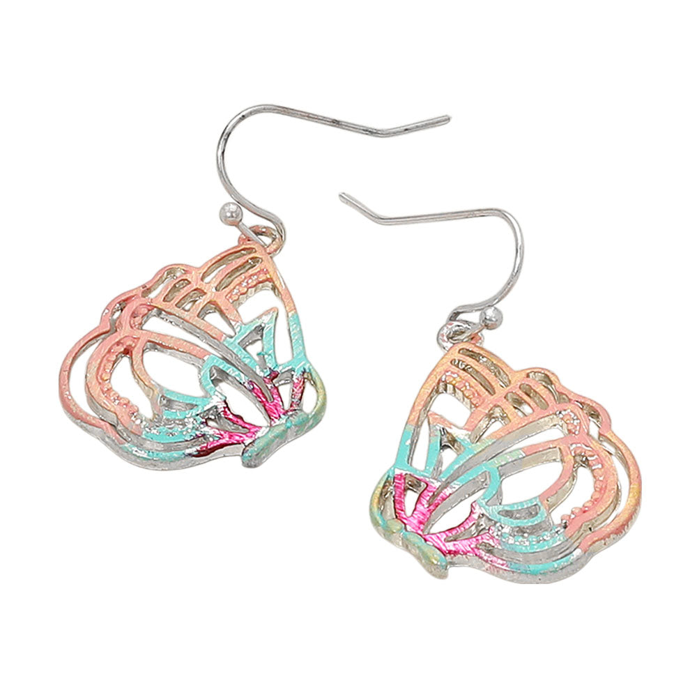 Delicate dangle earrings in a graceful butterfly wing silhouette, designed with an airy cutout pattern for a light, elegant look.