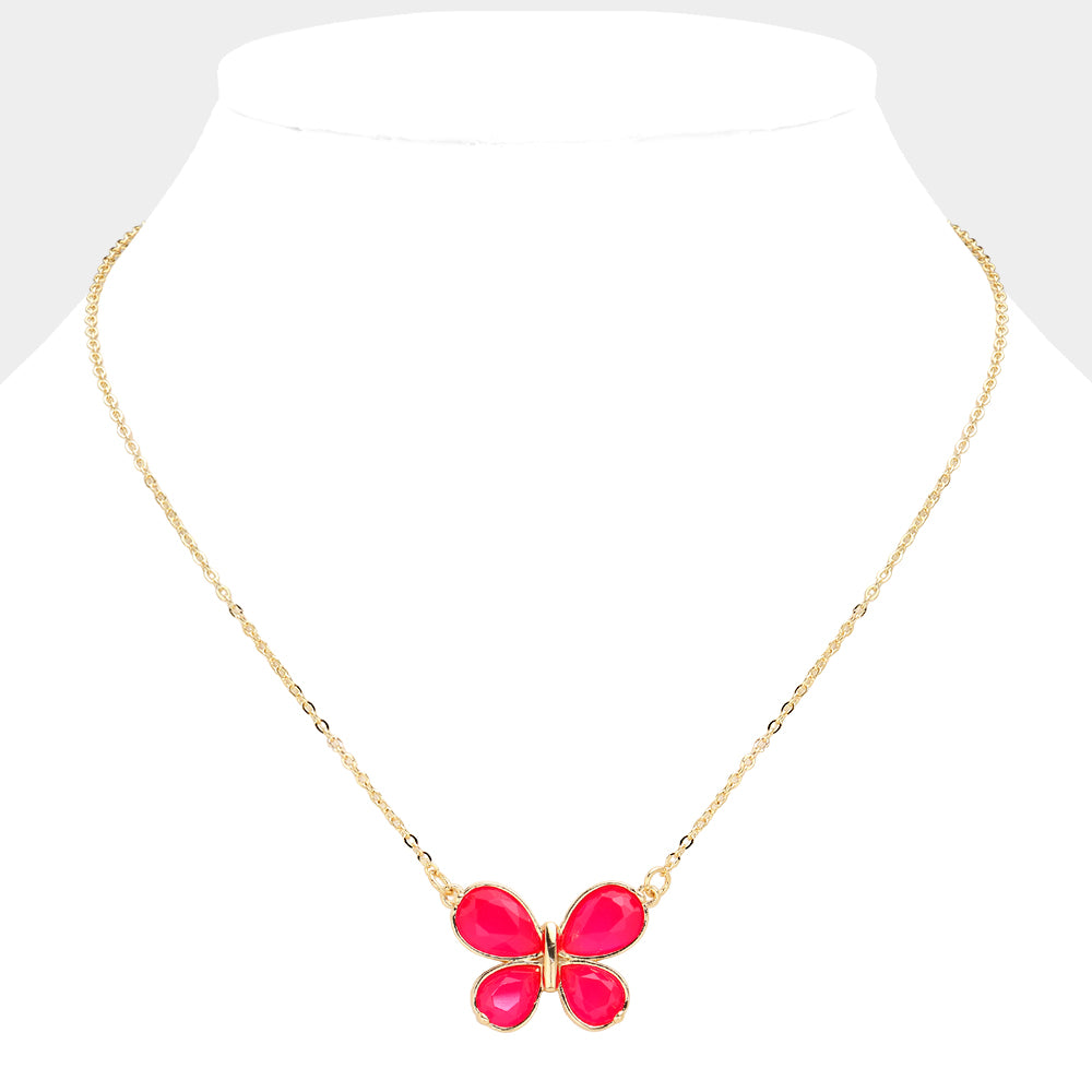 iLLASPARKZ Glass Stone Butterfly Cluster Pendant Necklace