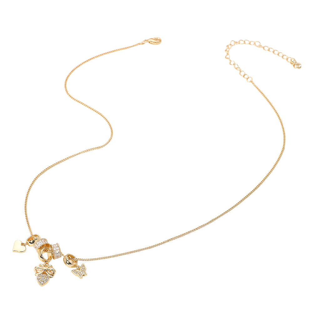 iLLASPARKZ Stone Paved Heart Butterfly Bow Charm Beaded Necklace