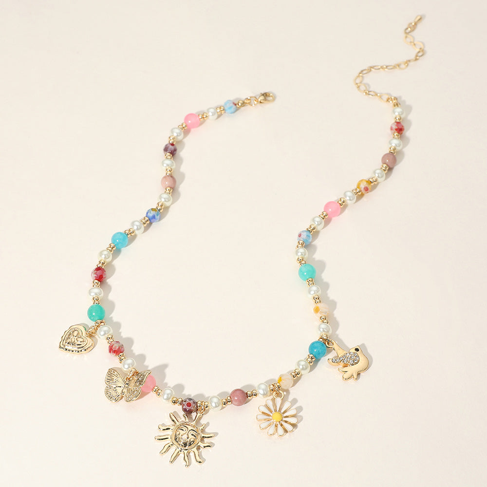 iLLASPARKZ Sun Flower Butterfly Heart Bird Charm Station Pearl Beaded Necklace