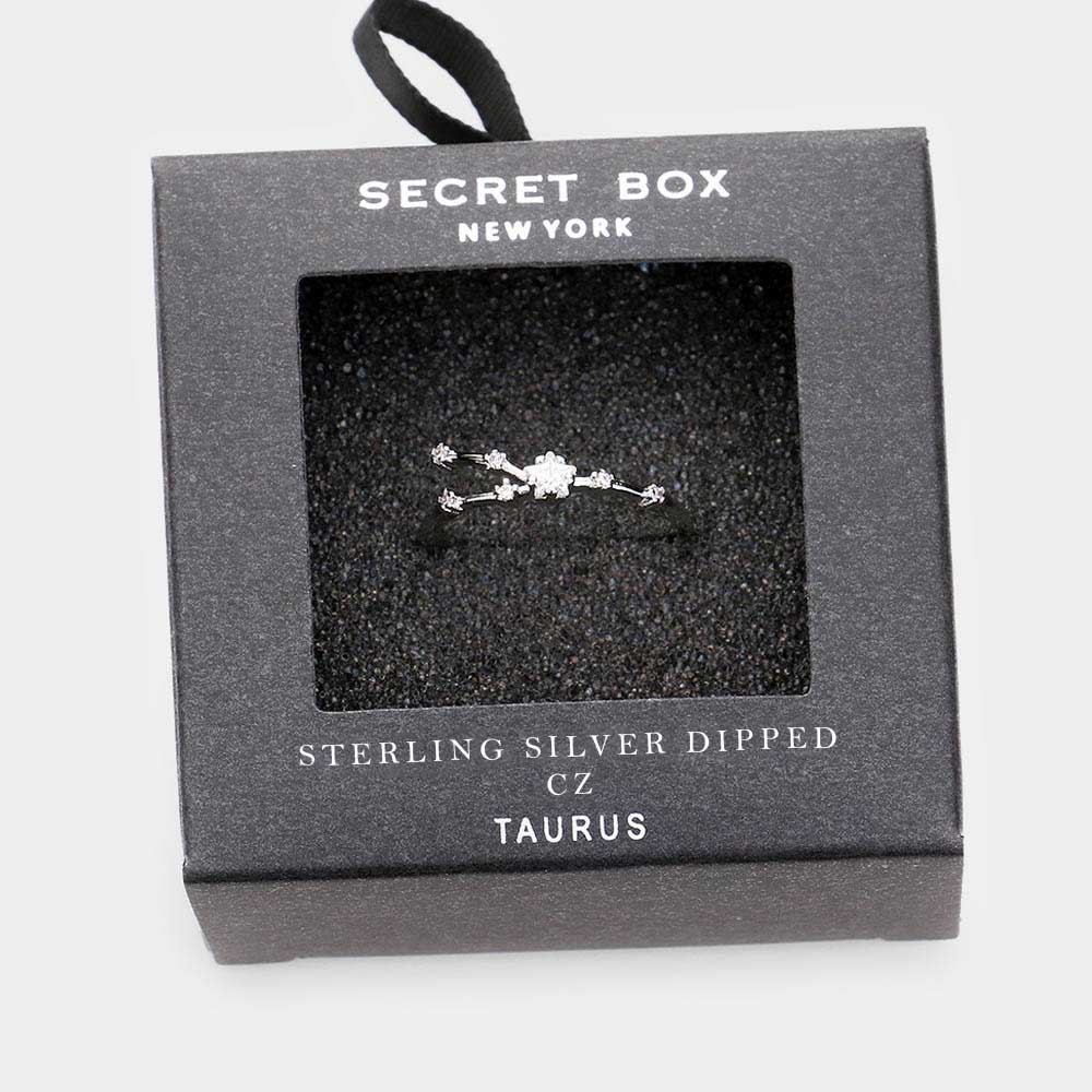 iLLASPARKZ Secret Box _ Sterling Silver Dipped CZ Zodiac Sign Taurus Ring