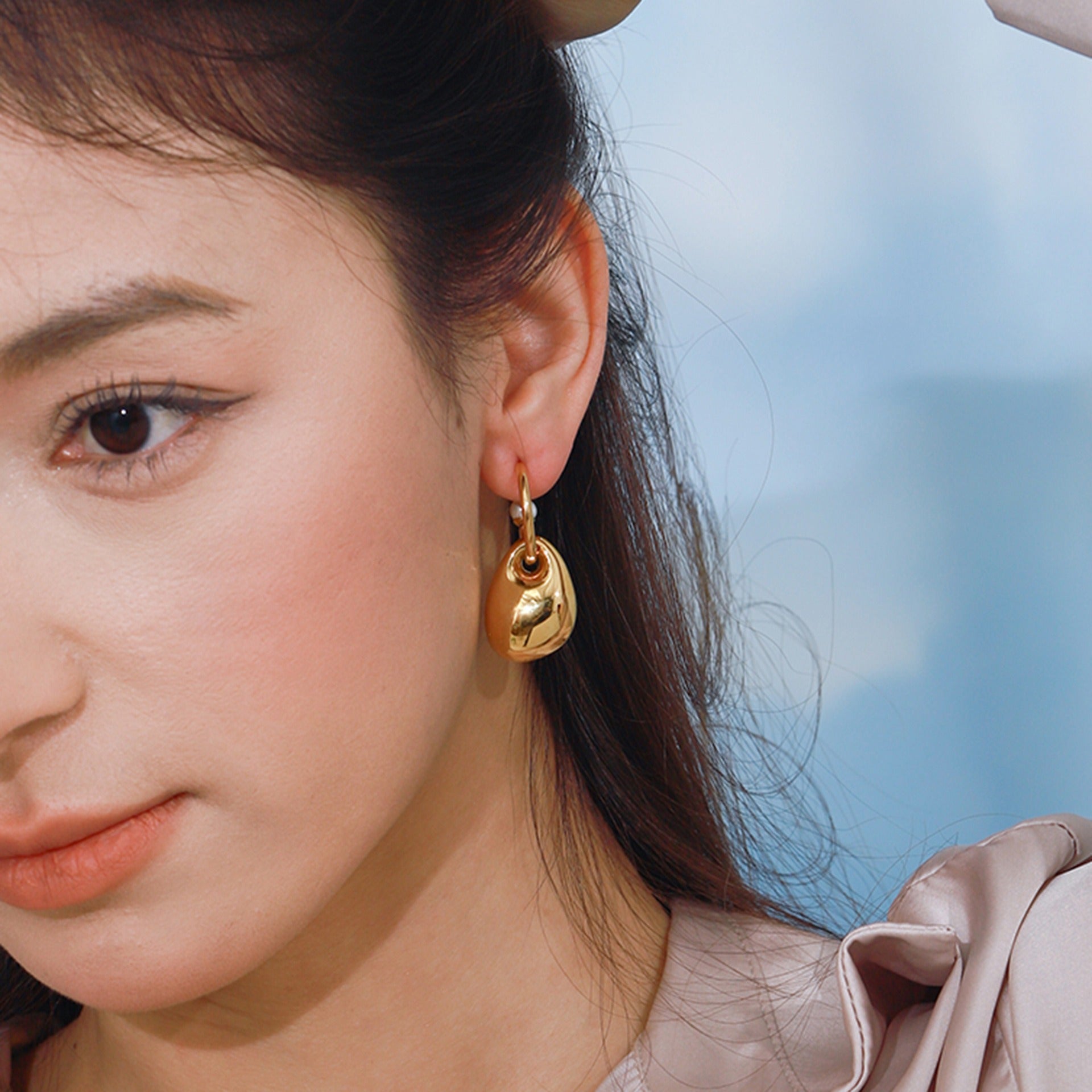 C-shaped structure combined with pearls: The top of the earring adopts a simple and smooth C-shaped design, one end is an earring, and the other end is exquisitely inlaid with a lustrous and warm pearl, which is not only a decorative touch, but also the key to fixing the structure, ensuring the stable suspension of the oval pendant.