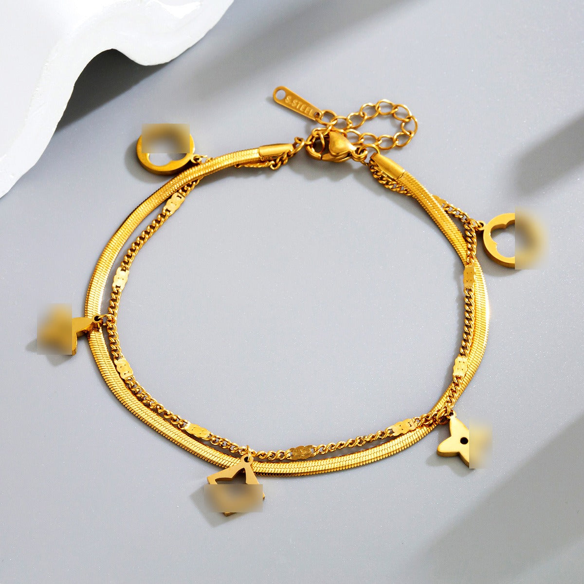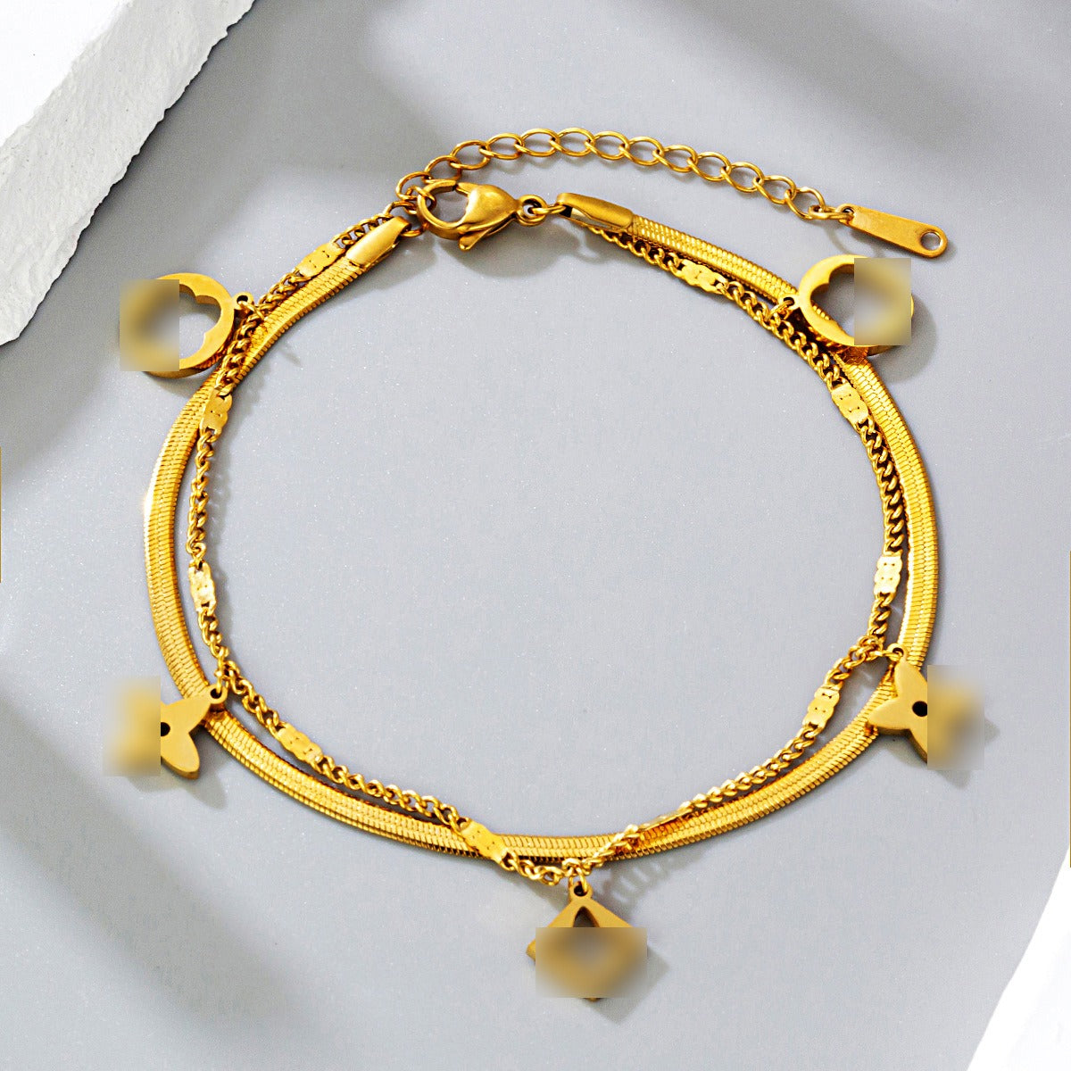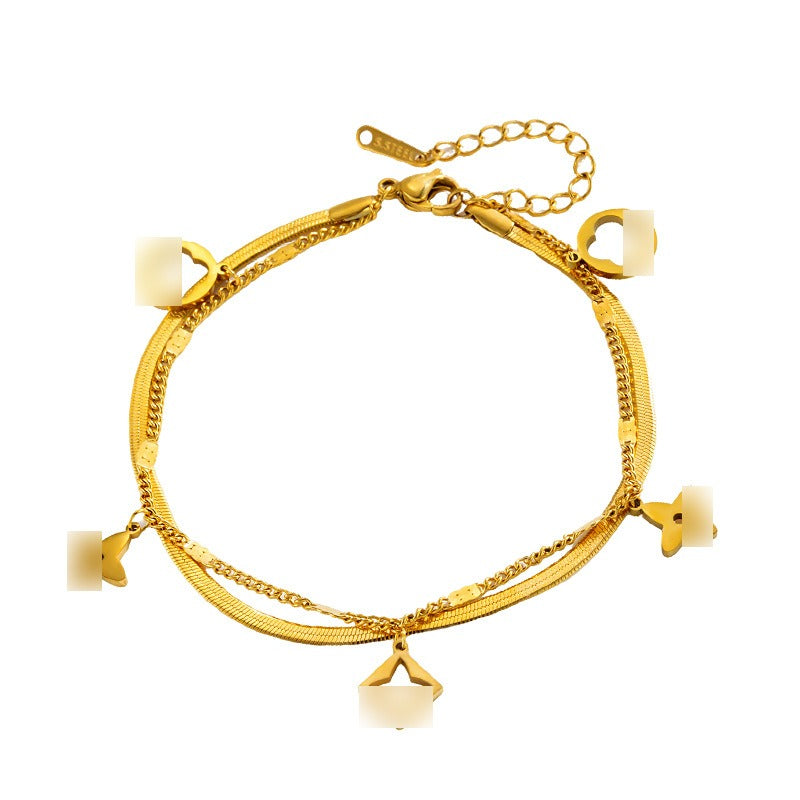 18K Gold Four-Leaf Clover Pink and Purple Round Pendant Foot Ornament