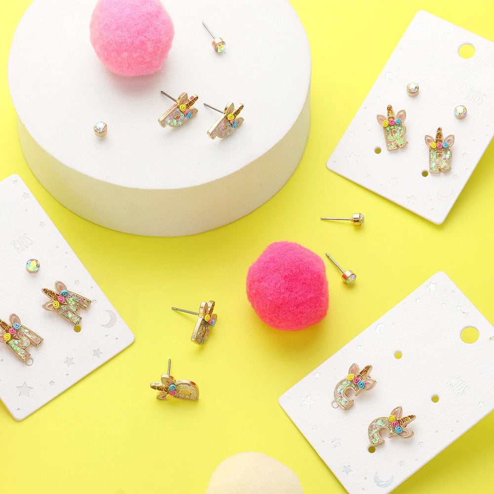 iLLASPARKZ 2Pairs - R Round Stone Unicorn Monogram Stud Kids Earrings