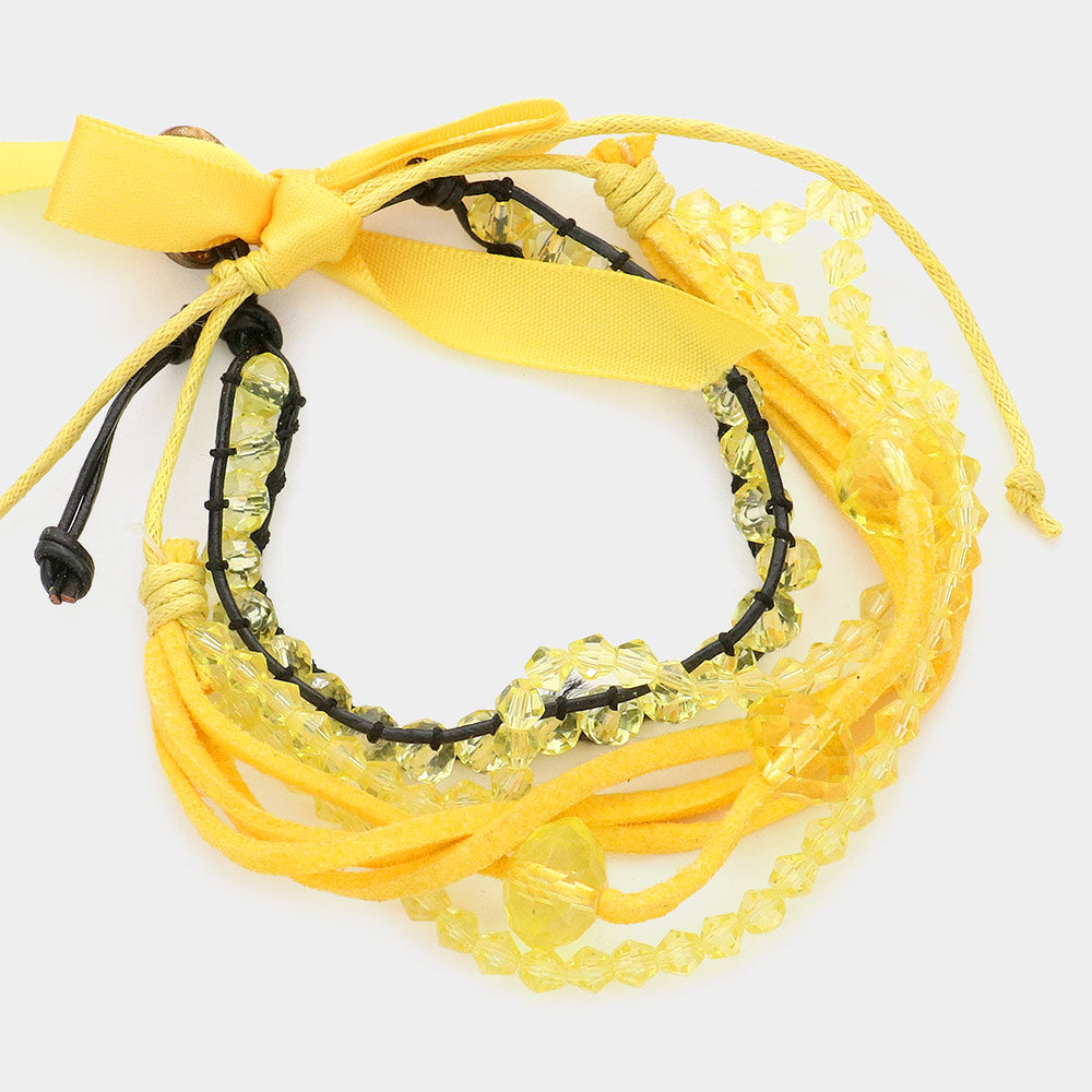 iLLASPARKZ 2PCS - Bead Faux Suede Adjustable Cinch Pull Tie Bracelets