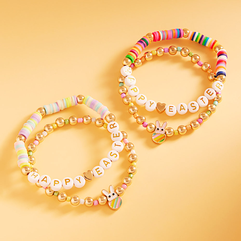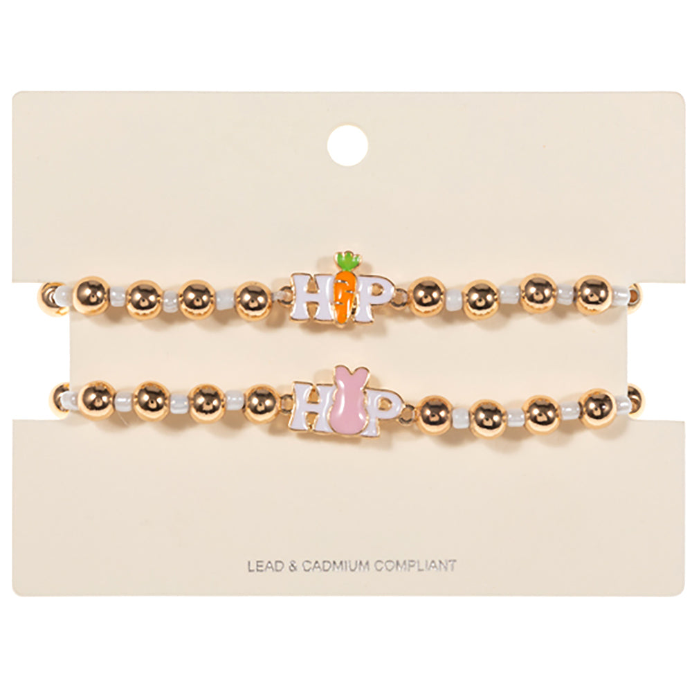iLLASPARKZ 2PCS - Enamel Easter HIP HOP Message Ball Beaded Stretch Bracelets