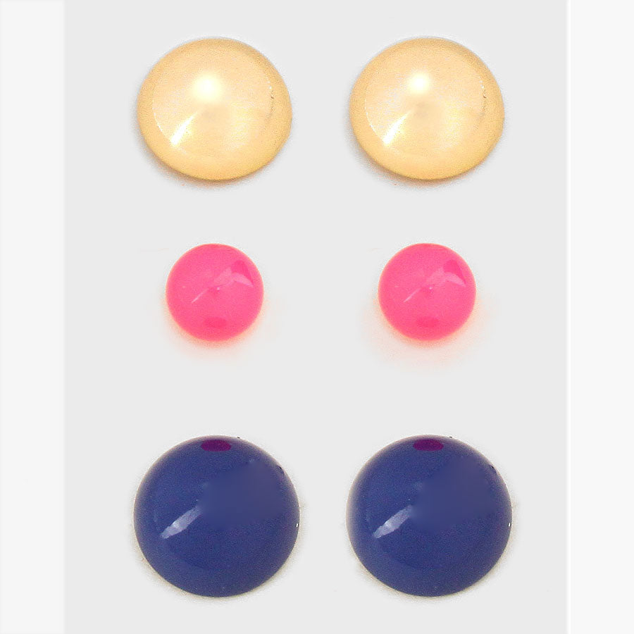 iLLASPARKZ 3-Pairs Assorted Dome Stud Earrings