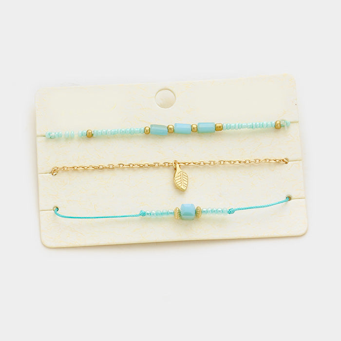 iLLASPARKZ 3 PCS - Leaf charm beaded bracelets