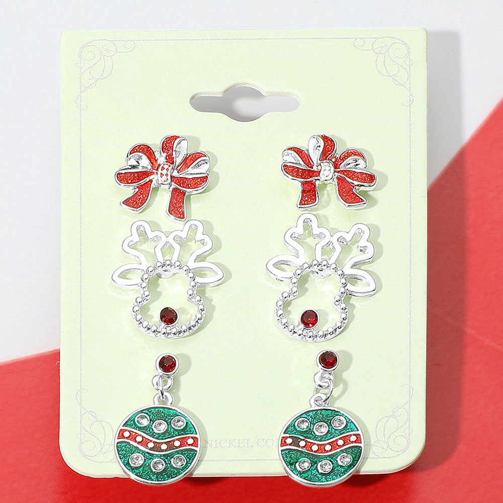 iLLASPARKZ 3Pairs - Bow Reindeer Holiday Ornament Earring Set