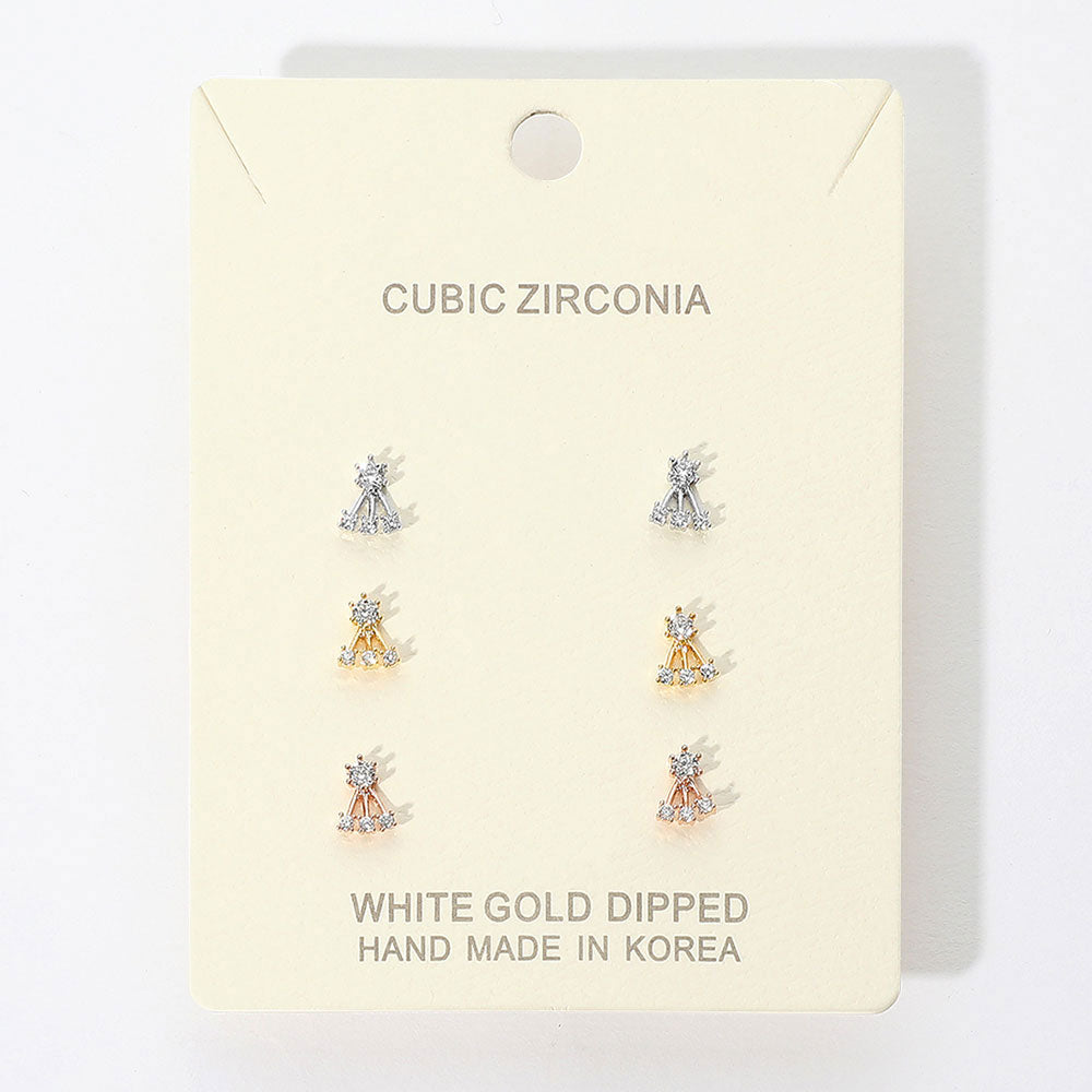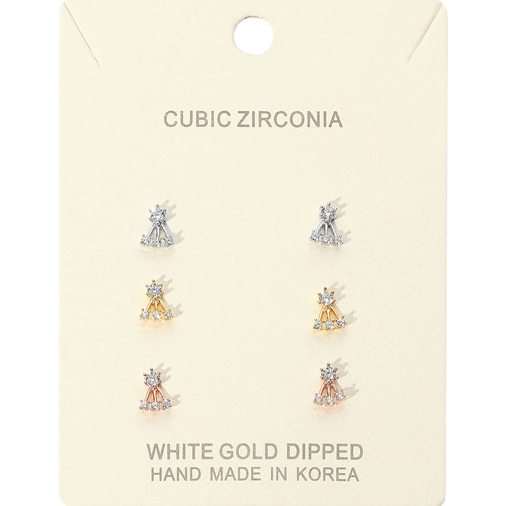 iLLASPARKZ 3Pairs - Gold Dipped CZ Abstract Stud Earrings