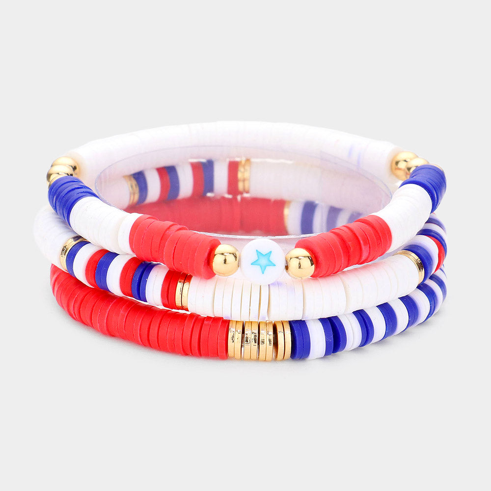 iLLASPARKZ 3PCS - American USA Flag Heishi Beads Multi Layered Bracelets