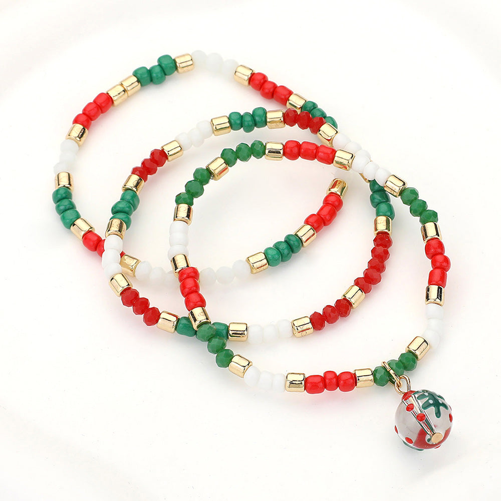 iLLASPARKZ 3PCS - Christmas Tree Ball Charm Beaded Stretch Multi Layered Bracelets