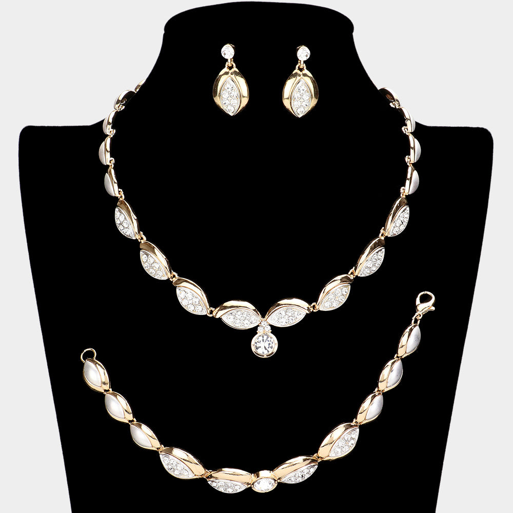 iLLASPARKZ 3PCS - Crystal Rhinestone Accented Marquise Necklace Jewelry Set