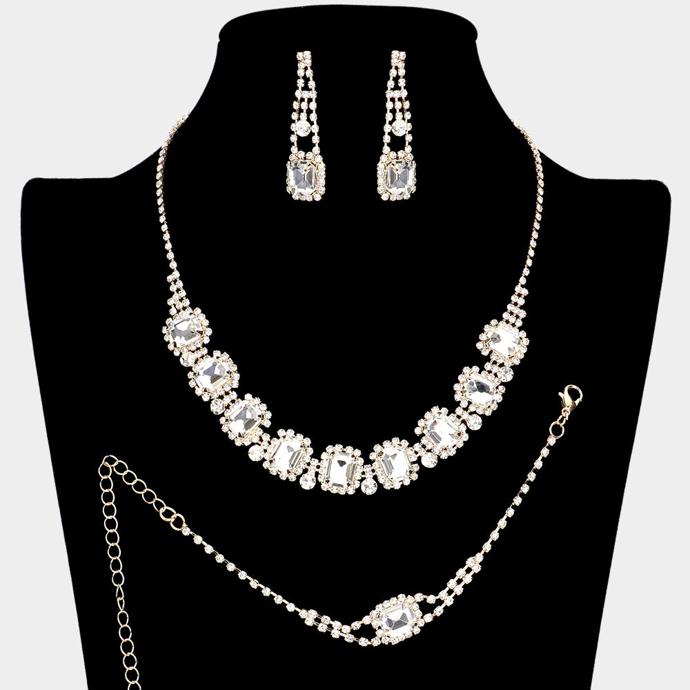 iLLASPARKZ 3PCS - Emerald Cut Stone Accented Rhinestone Necklace Jewelry Set