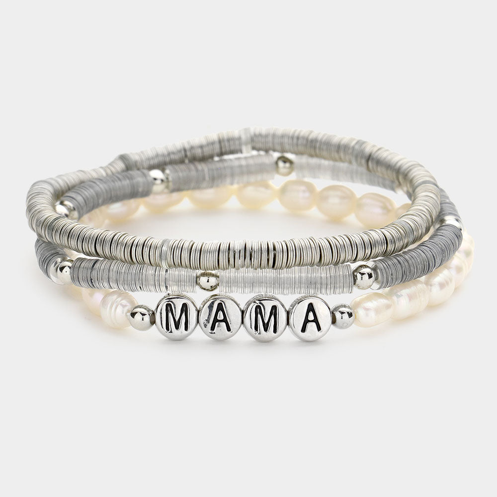 iLLASPARKZ 3PCS - MAMA Freshwater Pearl Stretch Bracelets