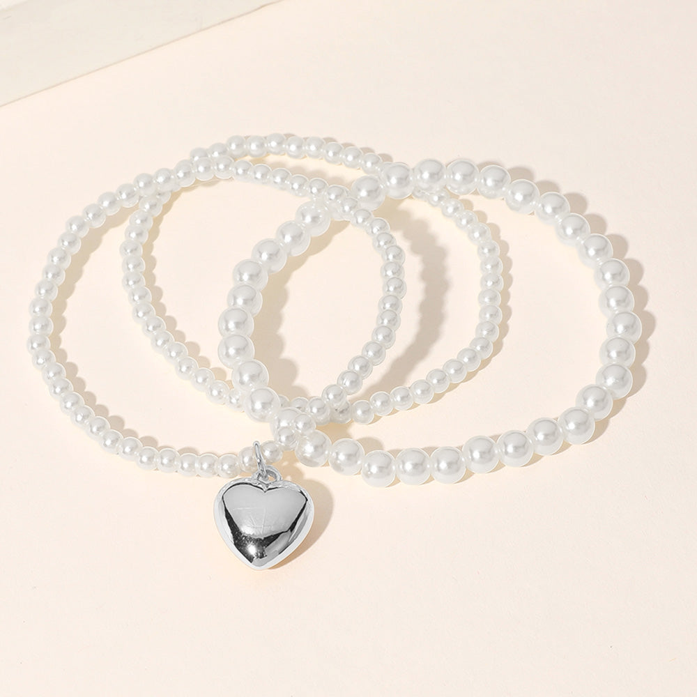 iLLASPARKZ 3PCS - Metal Heart Charm Pointed Pearl Beaded Stretch Multi Layered Bracelets