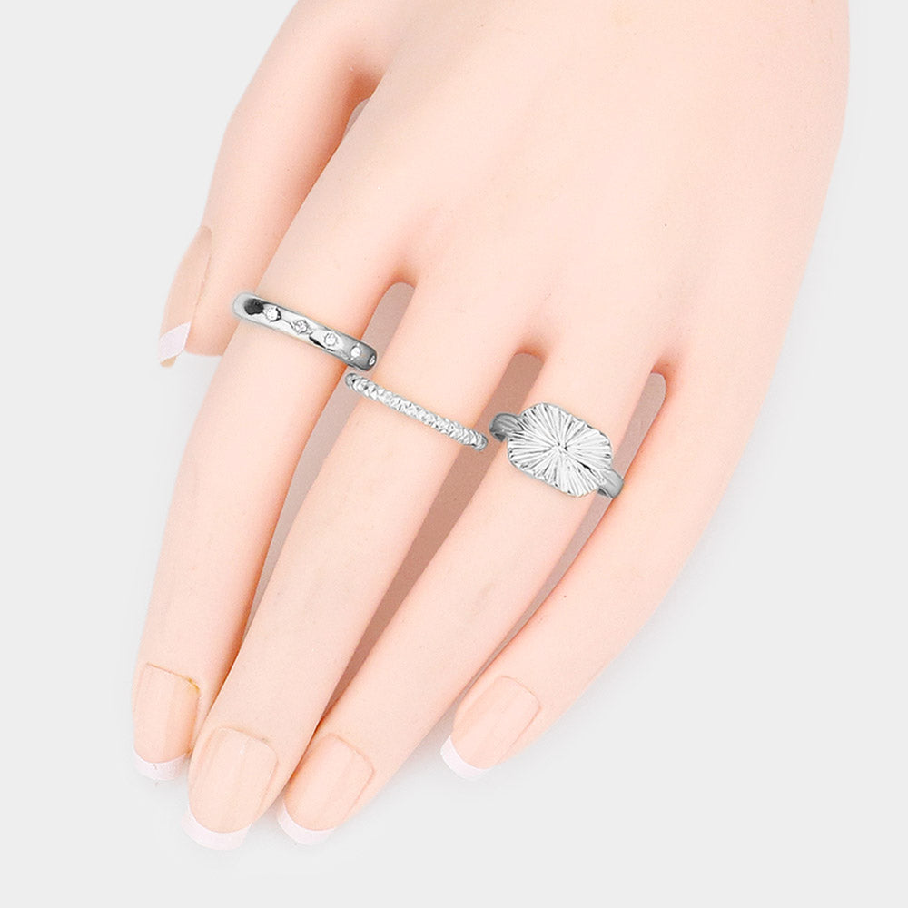 iLLASPARKZ 3PCS - Rectangle Rhinestone Embellished Metal Band Mixed Rings