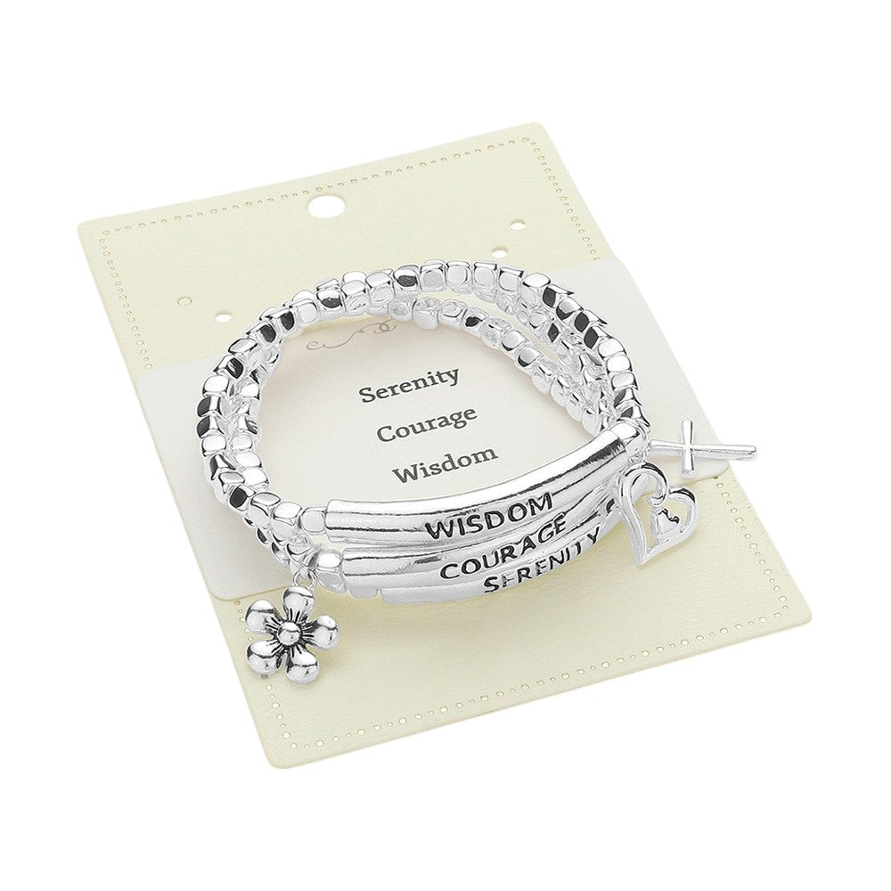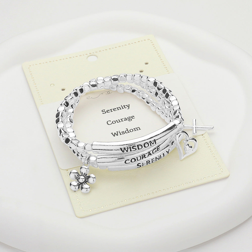 iLLASPARKZ 3PCS - Serenity Courage Wisdom Message Flower Heart Cross Charm Stretchable Religious Bracelets