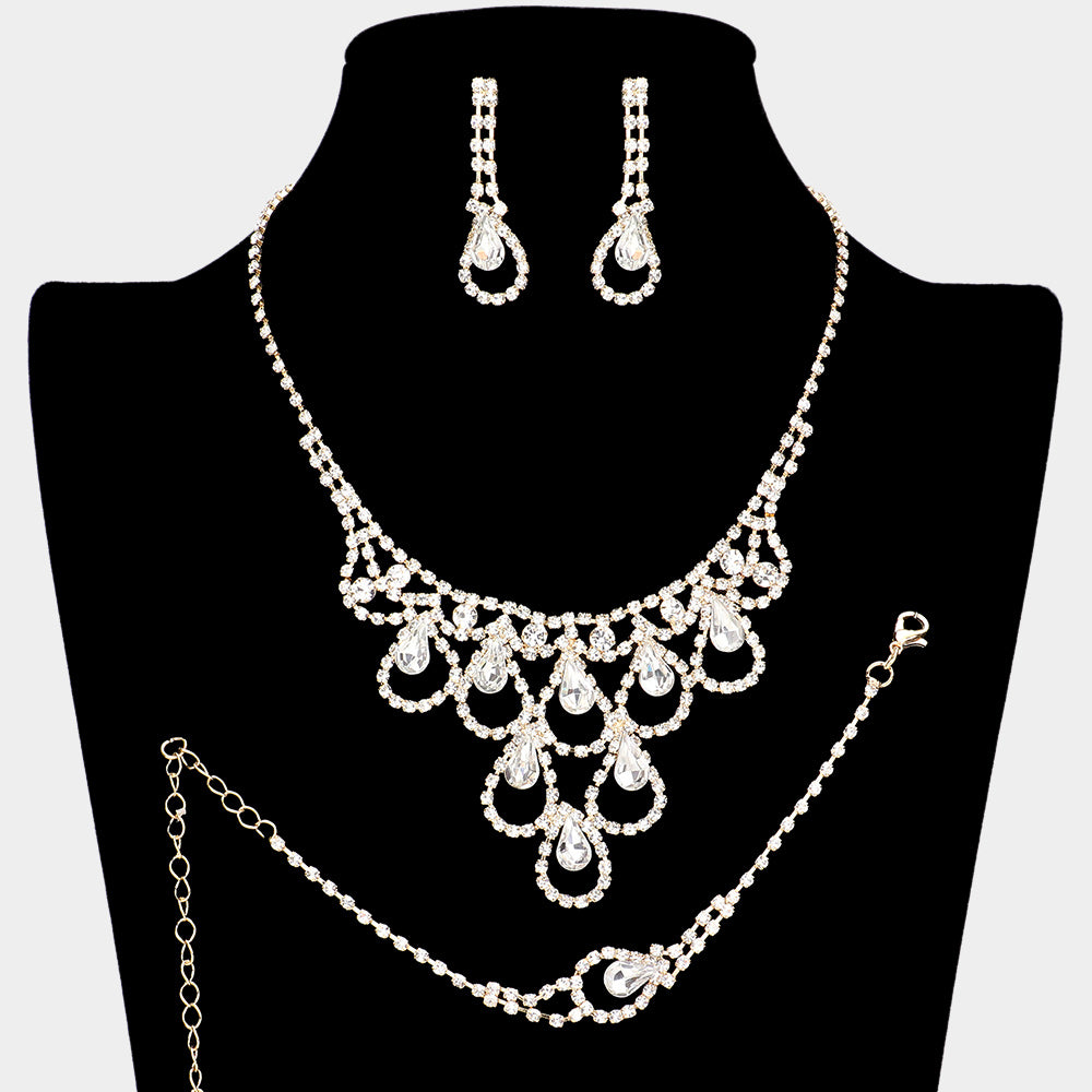 iLLASPARKZ 3PCS - Teardrop Stone Accented Rhinestone Necklace Jewelry Set