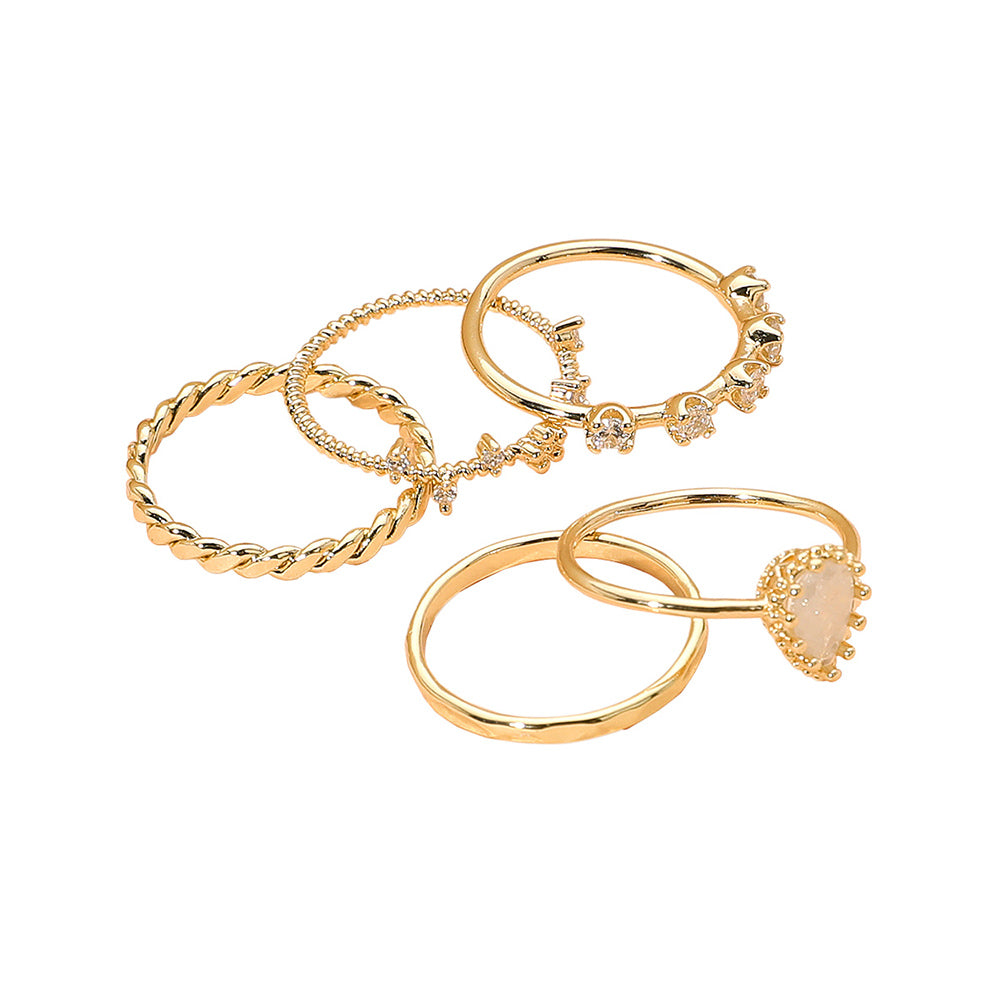 iLLASPARKZ 5PCS - Heart Stone Accent Stone Paved Dainty Stackable Ring Set