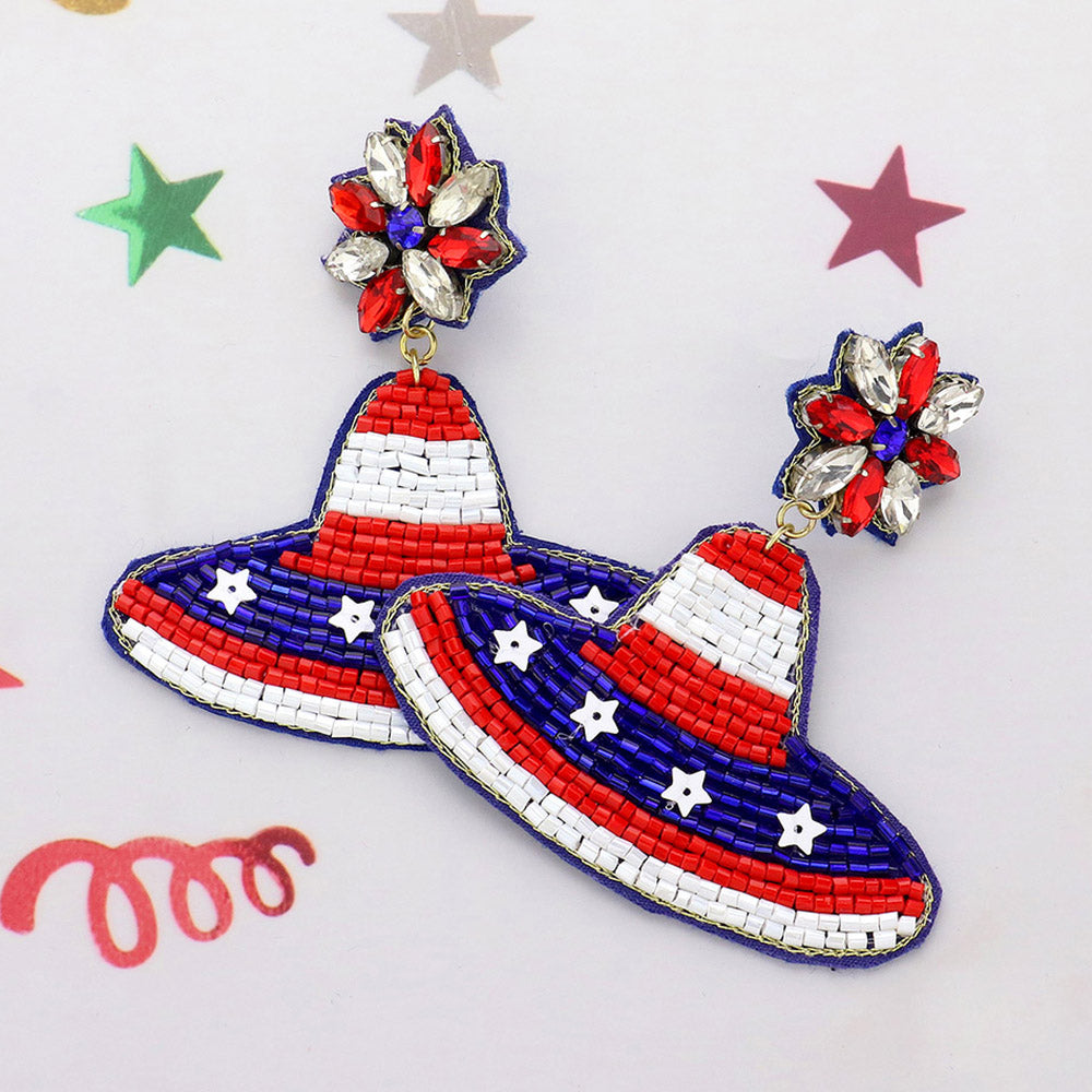 iLLASPARKZ American USA Flag Hat Beaded Dangle Earrings