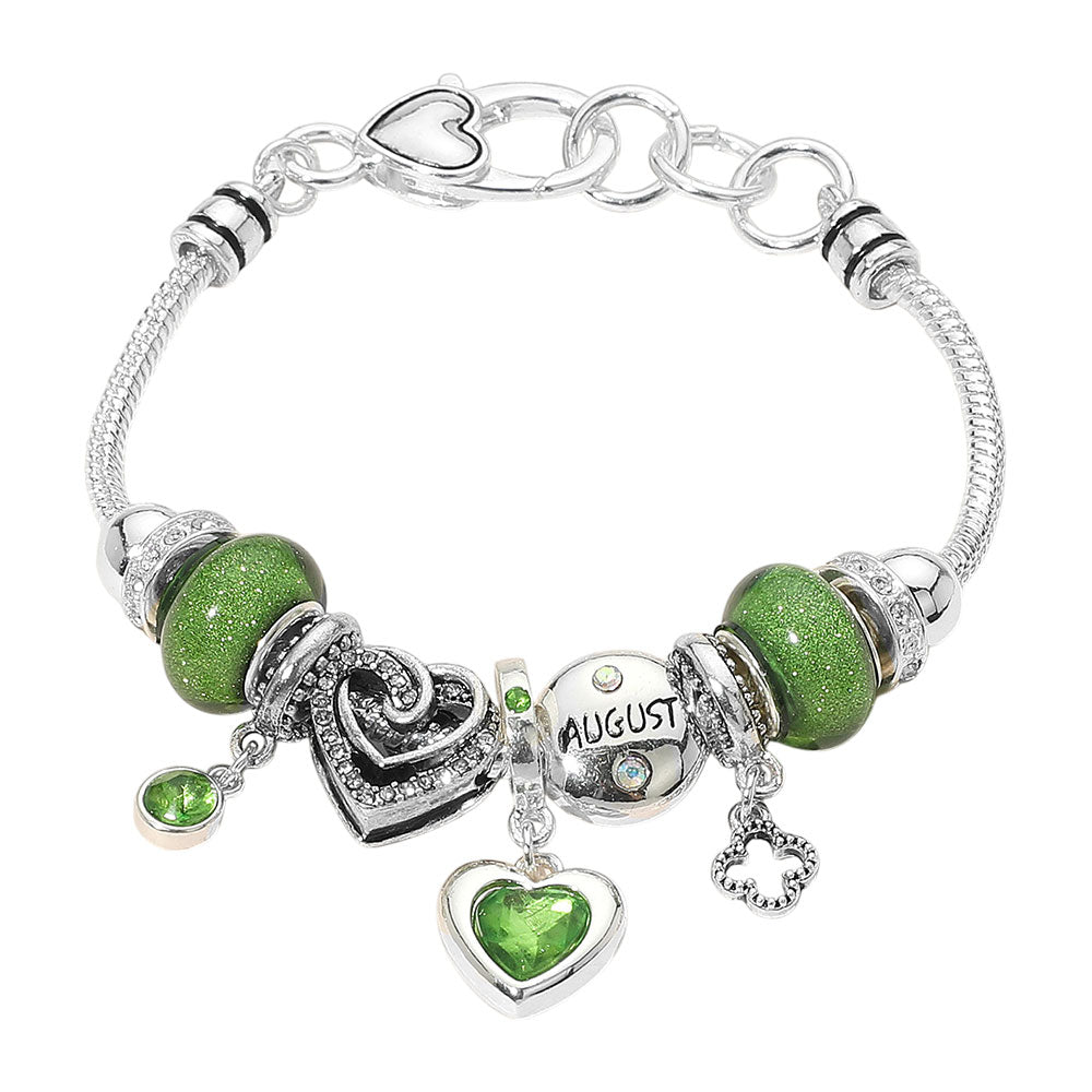 Embrace August birthdays with this elegant charm bracelet featuring heart motifs and sparkling bead details. Representing felicity and protection, it's the perfect gift to honor someone special.