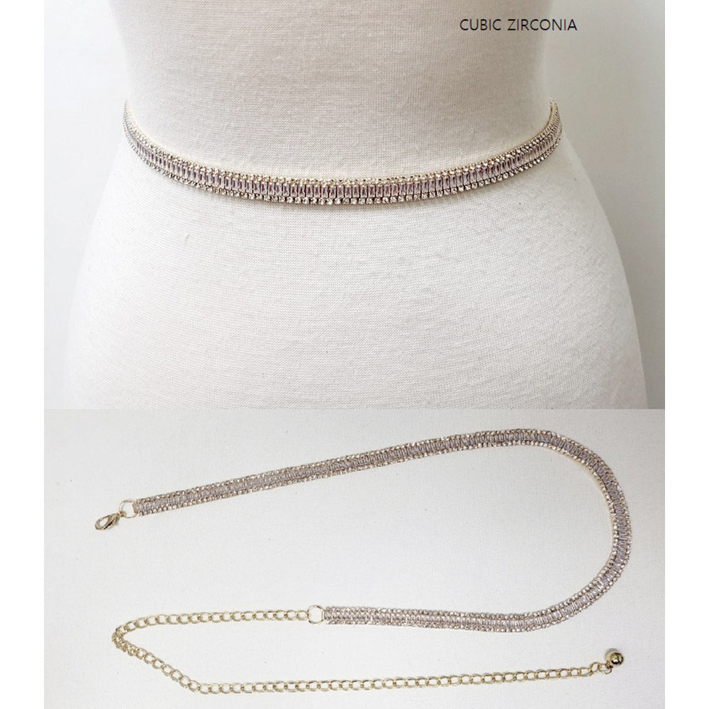 iLLASPARKZ Baguette Stone Cluster Link Chain Belt
