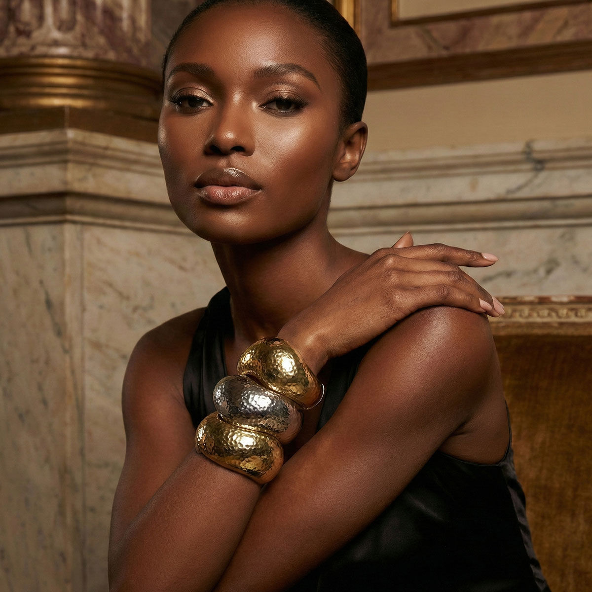 Bangle Hammered Silver Wavy Chunky Bracelet