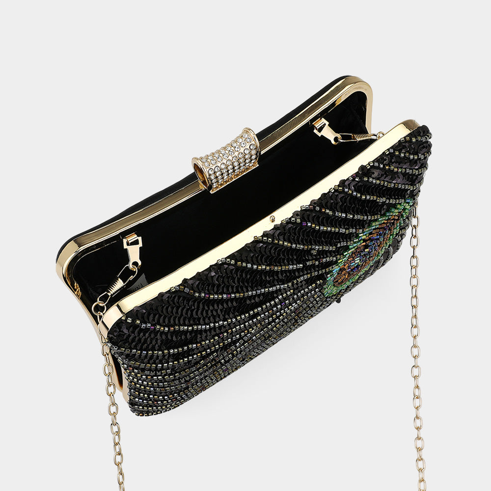 iLLASPARKZ Beaded Sequin Peacock Clutch Evening Bag / Crossbody Bag