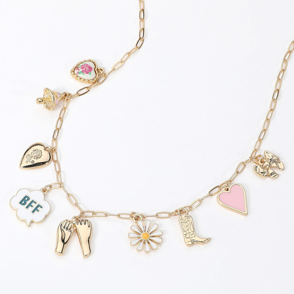 iLLASPARKZ BFF Message Flower Heart Bow Mushroom Boot Charm Station Paperclip Chain Necklace