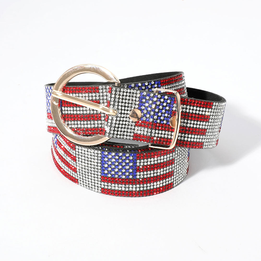 iLLASPARKZ Bling Studded American USA Flag Patterned Belt