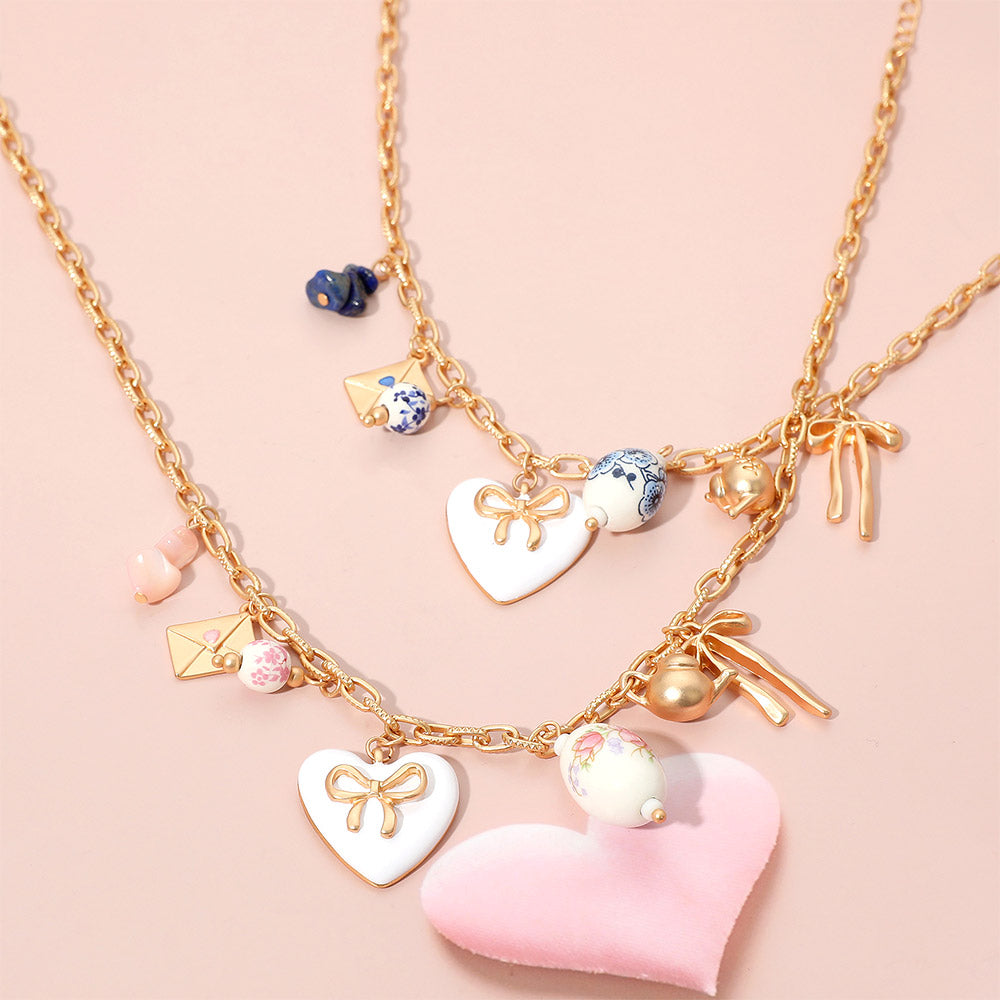 iLLASPARKZ Bow Heart Tea Party Charm Station Necklace