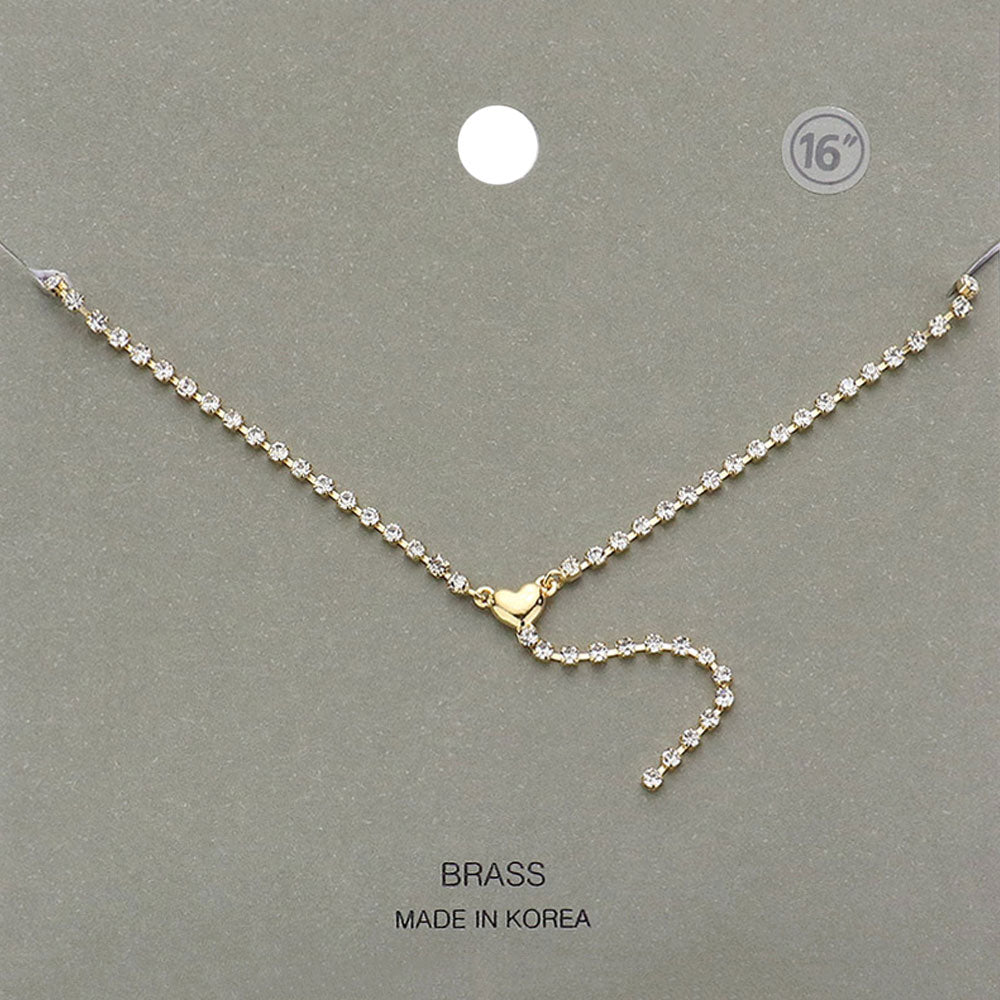 iLLASPARKZ Brass Metal Dainty Rhinestone Chain Heart Pendant Necklace