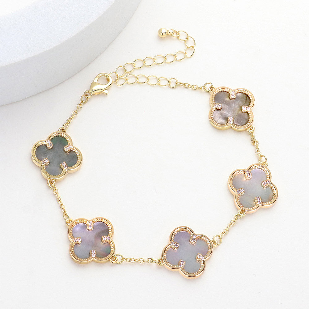 iLLASPARKZ Brass Metal Mother Of Pearl Quatrefoil Station Bracelet
