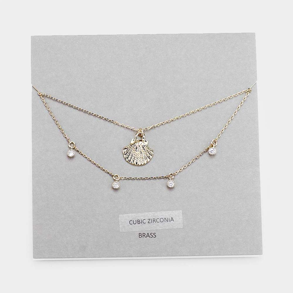 iLLASPARKZ Brass Metal Round CZ Shell Layered Necklace