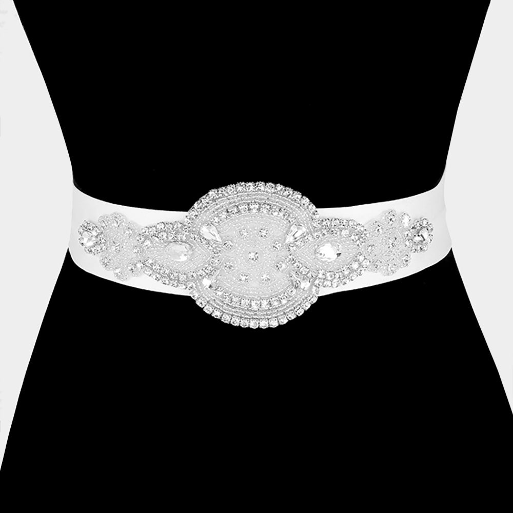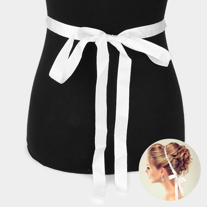 iLLASPARKZ Bridal Wedding Pearl Crystal Sash Ribbon Belt / Headband