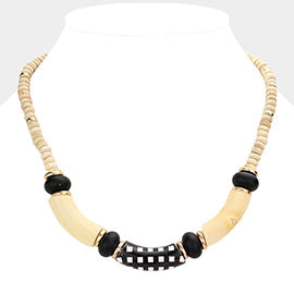 iLLASPARKZ Check Pattered Resin Accented Wood Beaded Necklace